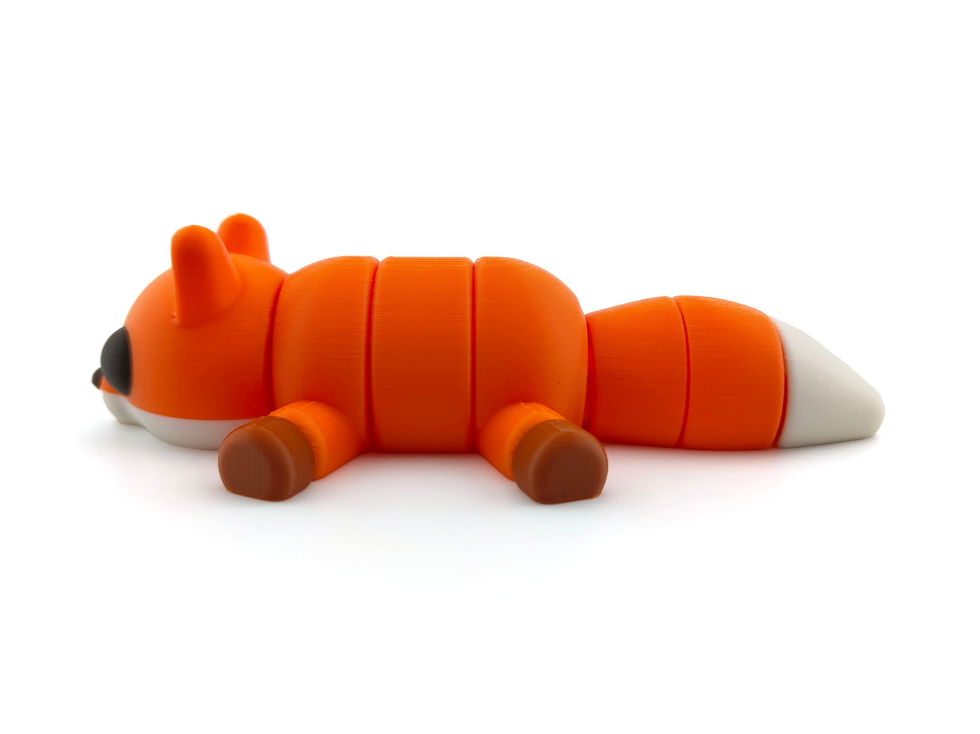 This charming fox is designed to lie flat in a relaxed pose, capturing the grace and intelligence of these iconic creatures. Crafted with precision using high-quality filament, it features four movable joints: the head, upper body, lower body, and back, allowing for subtle positioning while maintaining its signature stance.