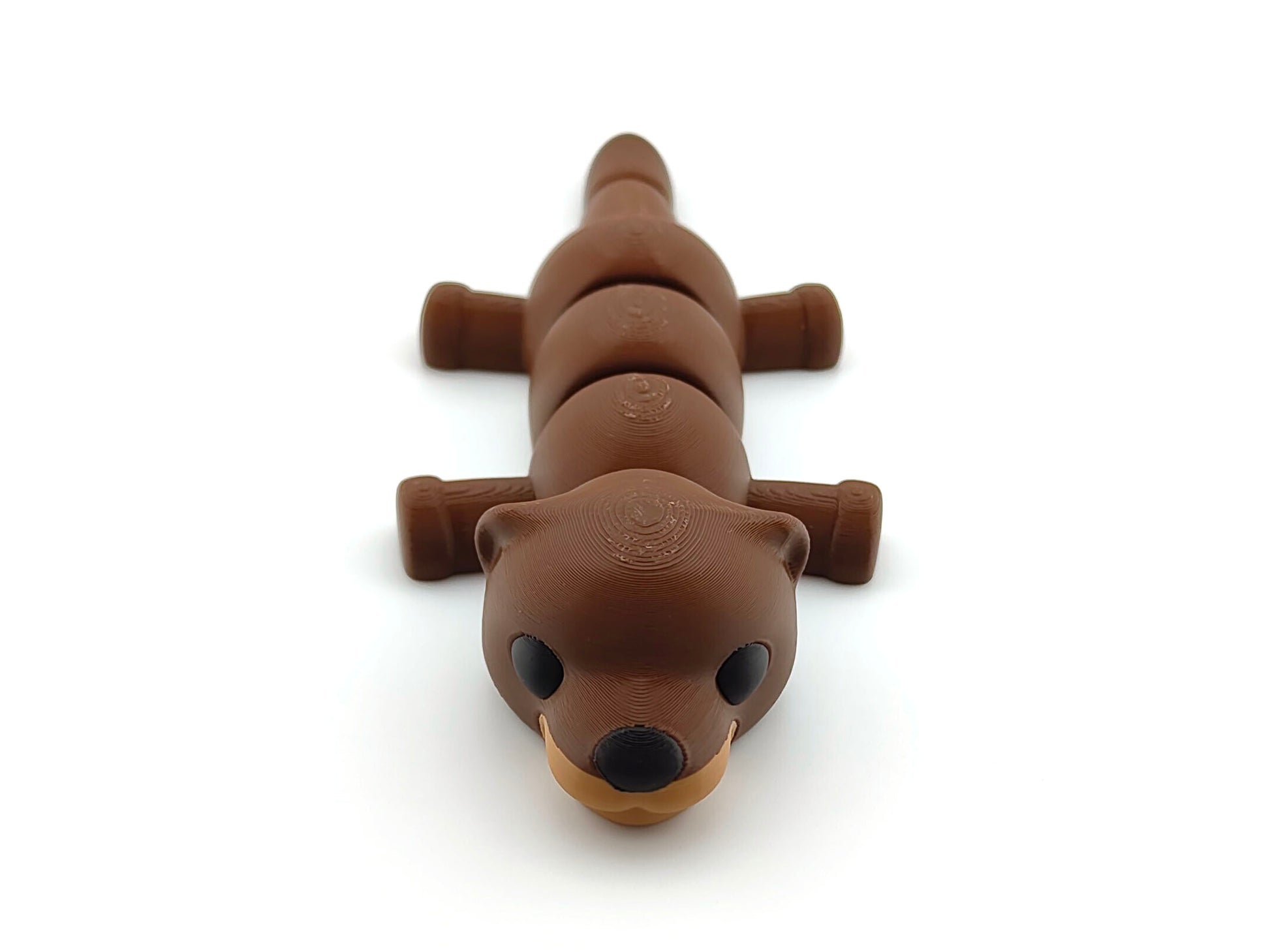 This adorable otter is designed to lie flat in a relaxed pose, capturing the curious and energetic spirit of these playful creatures. Crafted with precision using high-quality filament, it features four movable joints: the head, upper body, lower body, and back, allowing for subtle positioning while maintaining its charming stance.